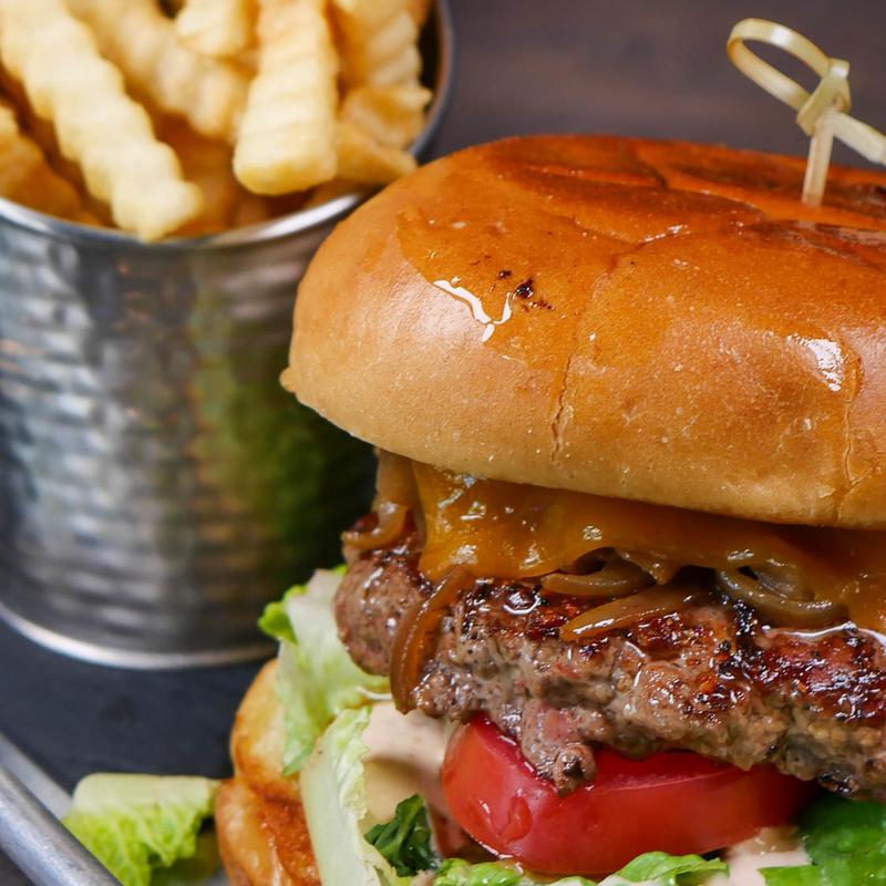 100% Angus patty, shredded lettuce, tomato, grilled onions, cheddar cheese, and Freddy sauce on a warm sesame bun. Served with crinkle fries | Add Bacon +$3.00
